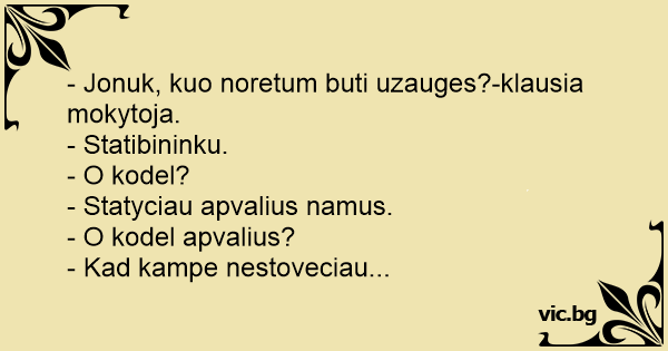 - Jonuk, kuo noretum buti uzauges?-klausia mokytoja.