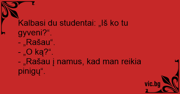 Kalbasi du studentai: „Iš ko tu gyveni?“.