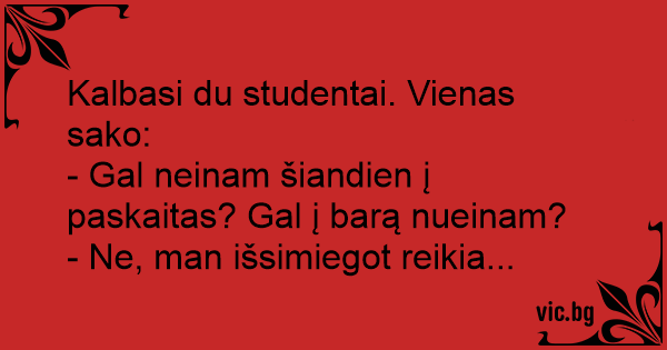 Kalbasi du studentai. Vienas sako: