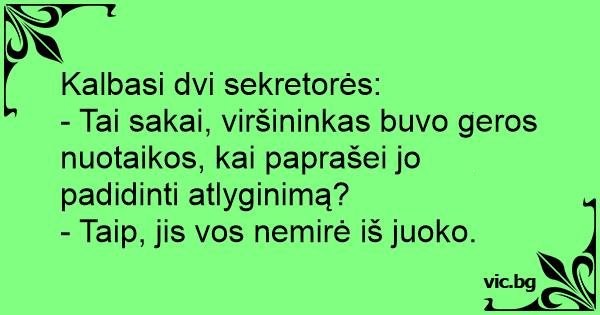 - Tai sakai, viršininkas buvo geros nuotaikos, kai paprašei jo padidinti atlyginimą?