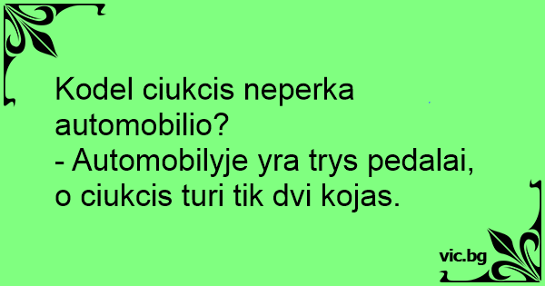 - Automobilyje yra trys pedalai, o ciukcis turi tik dvi kojas.