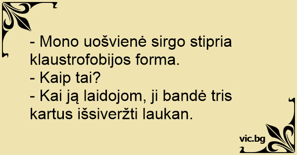 - Mono uošvienė sirgo stipria klaustrofobijos forma.