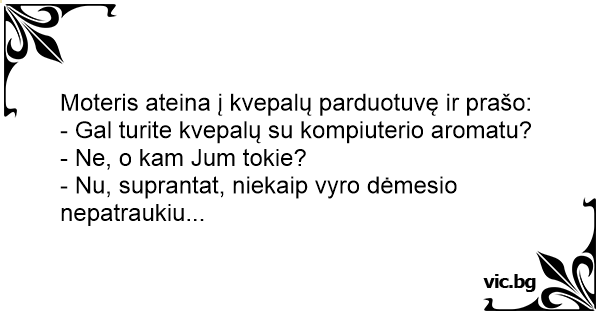 Moteris ateina į kvepalų parduotuvę ir prašo: