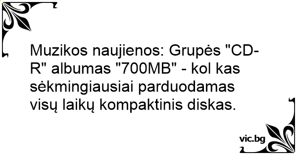 Muzikos naujienos: Grupės "CD-R" albumas "700MB" - kol kas sėkmingiausiai parduodamas visų laikų kompaktinis diskas.