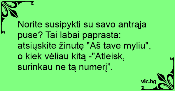 Norite susipykti su savo antrąja puse? Tai labai paprasta: atsiųskite žinutę "Aš tave myliu", o kiek vėliau kitą -"Atleisk, surinkau ne tą numerį”.