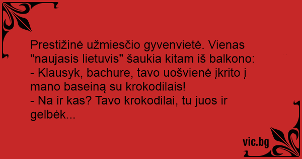 - Klausyk, bachure, tavo uošvienė įkrito į mano baseiną su krokodilais!
