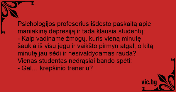 Psichologijos profesorius išdėsto paskaitą apie maniakinę depresiją ir tada klausia studentų:
