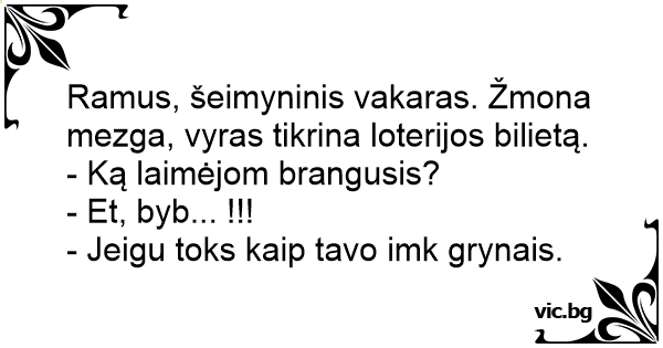 Ramus, šeimyninis vakaras. Žmona mezga, vyras tikrina loterijos bilietą.