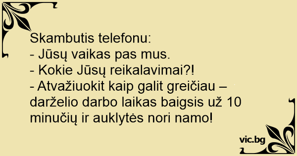 - Atvažiuokit kaip galit greičiau – darželio darbo laikas baigsis už 10 minučių ir auklytės nori namo!