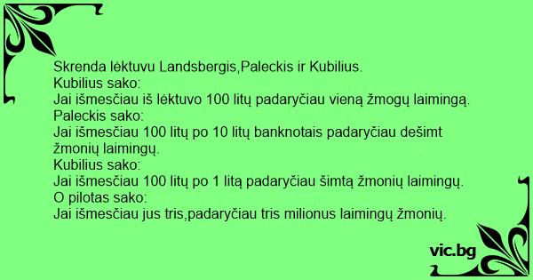 Jai išmesčiau iš lėktuvo 100 litų padaryčiau vieną žmogų laimingą.