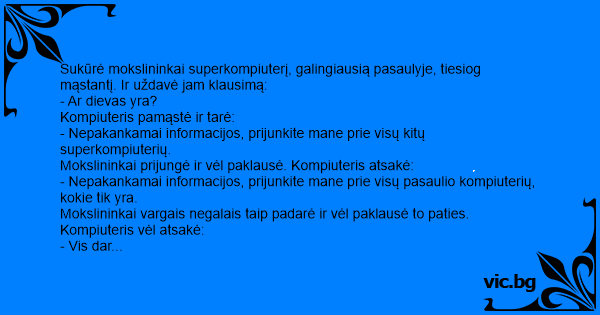 Mokslininkai vargais negalais taip padarė ir vėl paklausė to paties. Kompiuteris vėl atsakė:
