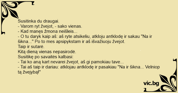 - O tu daryk kaip aš: aš ryte atsikeliu, atkloju antklodę ir sakau "Na ir šikna..." Po to mes apsipykstam ir aš išvažiuoju žvejot.