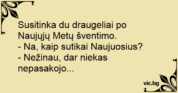 Susitinka du draugeliai po Naujųjų Metų šventimo.