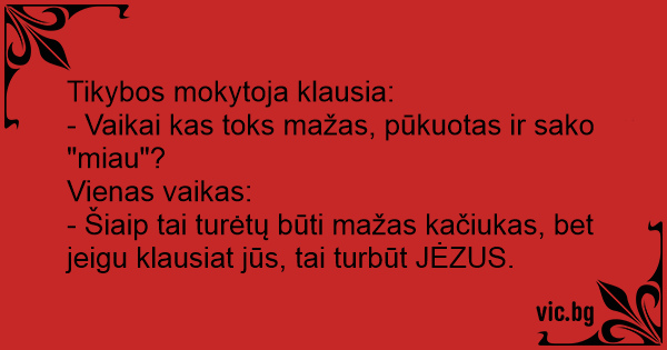 Tikybos mokytoja klausia: -...