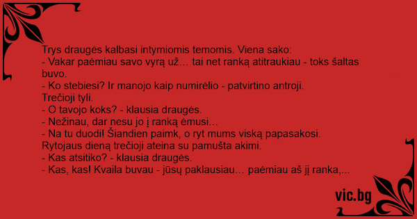 Trys draugės kalbasi intymiomis temomis. Viena sako: