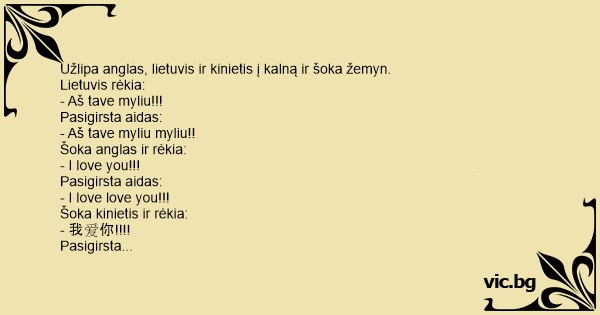 Užlipa anglas, lietuvis ir kinietis į kalną ir šoka žemyn.