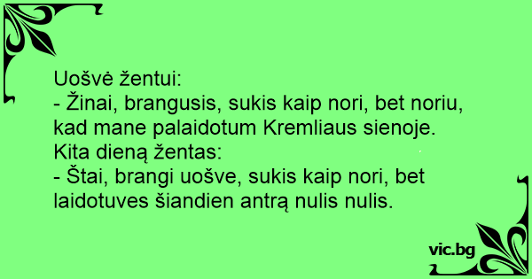 - Štai, brangi uošve, sukis kaip nori, bet laidotuves šiandien antrą nulis nulis.