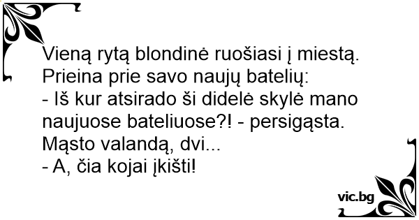 - Iš kur atsirado ši didelė skylė mano naujuose bateliuose?! - persigąsta.