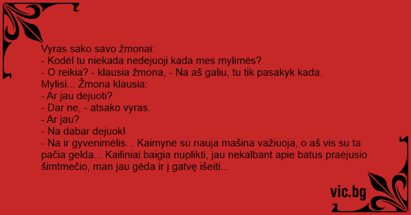 - O reikia? - klausia žmona, - Na aš galiu, tu tik pasakyk kada.