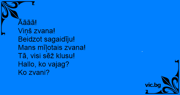 Āāāā! Viņš zvana! Beidzot sagaidīju! Mans mīļotais zvana! Tā, visi sēž klusu! Hallo, ko vajag? Ko zvani?