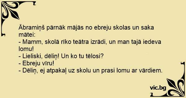 - Dēliņ, ej atpakaļ uz skolu un prasi lomu ar vārdiem.