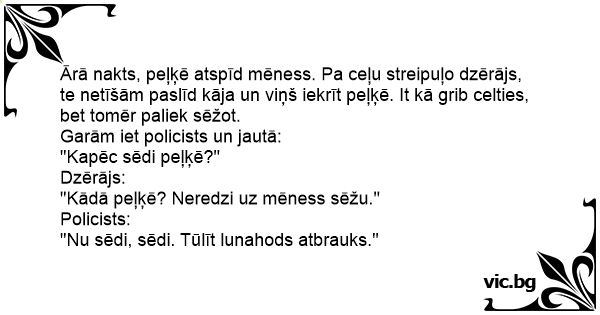 "Kādā peļķē? Neredzi uz mēness sēžu."
