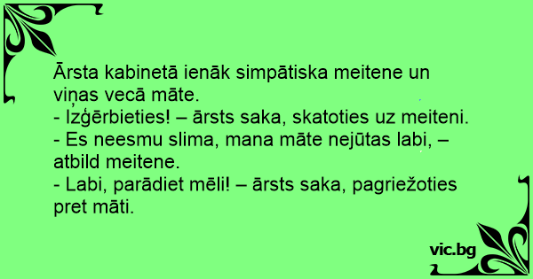 - Labi, parādiet mēli! – ārsts saka, pagriežoties pret māti.