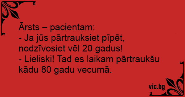 - Ja jūs pārtrauksiet pīpēt, nodzīvosiet vēl 20 gadus!