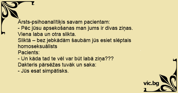 - Pēc jūsu apsekošanas man jums ir divas ziņas.