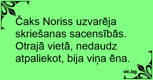 Čaks Noriss uzvarēja skriešanas sacensībās. Otrajā vietā, nedaudz atpaliekot, bija viņa ēna.