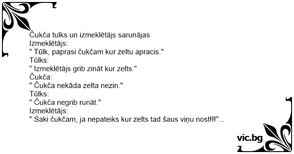 " Saki čukčam, ja nepateiks kur zelts tad šaus viņu nost!!!"