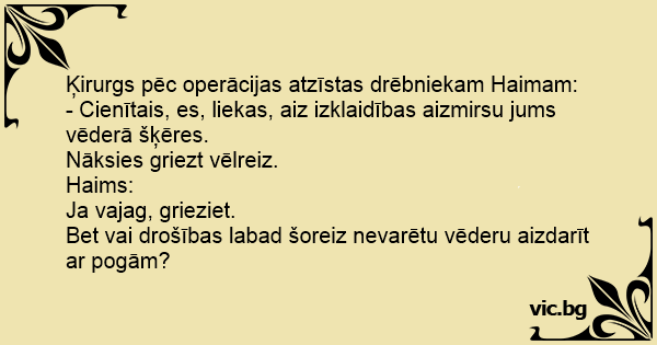 - Cienītais, es, liekas, aiz izklaidības aizmirsu jums vēderā šķēres.