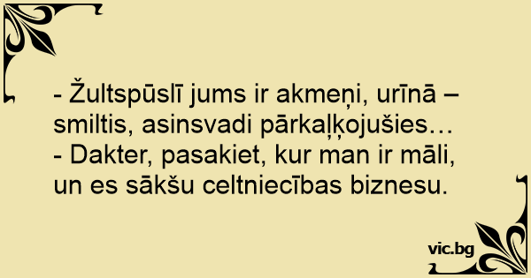 - Dakter, pasakiet, kur man ir māli, un es sākšu celtniecības biznesu.