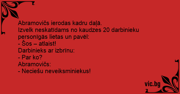 Izvelk neskatīdams no kaudzes 20 darbinieku personīgās lietas un pavēl: