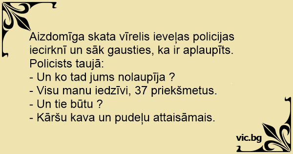Aizdomīga skata vīrelis ieveļas policijas iecirknī un sāk gausties, ka ir aplaupīts.