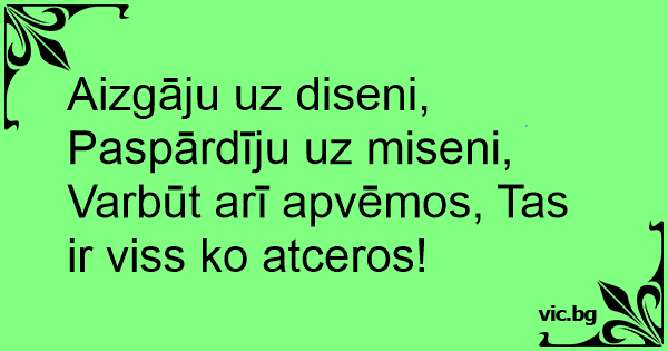 Aizgāju uz diseni, Paspārdīju uz miseni, Varbūt arī apvēmos, Tas ir viss ko atceros!