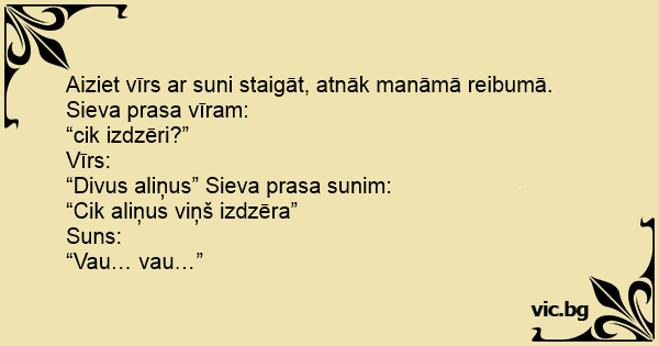 Aiziet vīrs ar suni staigāt, atnāk manāmā reibumā.