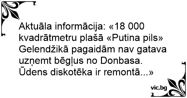 Aktuāla informācija: «18 000 kvadrātmetru plašā «Putina pils» Gelendžikā pagaidām nav gatava uzņemt bēgļus no Donbasa. Ūdens diskotēka ir remontā...»