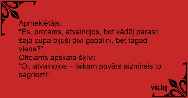 “Es, protams, atvainojos, bet kādēļ parasti šajā zupā bijuši divi gabaliņi, bet tagad viens?”.