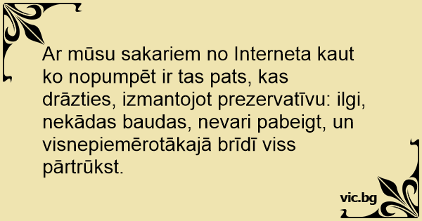 Ar mūsu sakariem no Interneta kaut ko nopumpēt ir tas pats, kas drāzties, izmantojot prezervatīvu: ilgi, nekādas baudas, nevari pabeigt, un visnepiemērotākajā brīdī viss pārtrūkst.