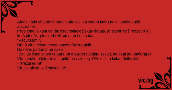 Atnāk kāds vīrs pie ārsta un sūdzas, ka viņam katru nakti sanāk gultā apčurāties.