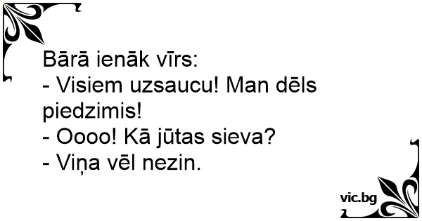 Bārā ienāk vīrs: - Visiem...