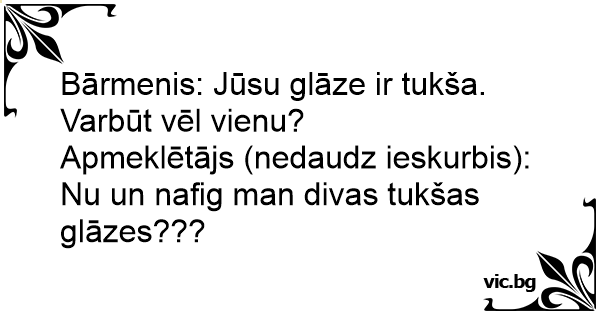 Apmeklētājs (nedaudz ieskurbis): Nu un nafig man divas tukšas glāzes???