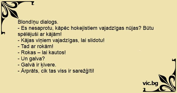 Blondīņu dialogs. - Es...