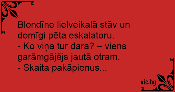 - Ko viņa tur dara? – viens garāmgājējs jautā otram.