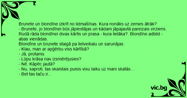 Blondīne un brunete staigā pa lielveikalu un sarunājas: