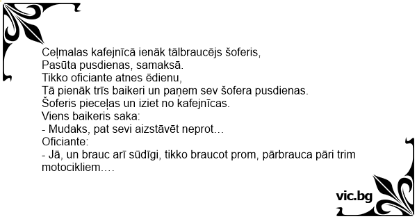 Tā pienāk trīs baikeri un paņem sev šofera pusdienas.