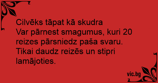 Var pārnest smagumus, kuri 20 reizes pārsniedz paša svaru.