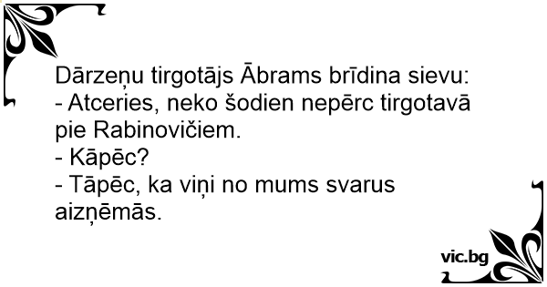 Dārzeņu tirgotājs Ābrams brīdina sievu: