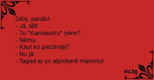 - Tu *Kamasutru* ņēmi?